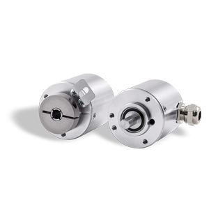 High performance, compact, single-turn, absolute encoder with 36mm body diameter and with solid or blind hollow shaft. Constructed from a robust corrosive resistant 6082 aluminium alloy body, with stainless steel shaft. Uses optical sensing, offering a maximum resolution of up to 20 Bit.