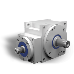 Hypoid gearboxes are highly precise and powerful right angle, axially offset gearboxes. These dynamic gearboxes are ideal for use in demanding applications, due to their powerful and compact design. Hypoid gearboxes have gear sets with high quality hypoid toothing made of hardened carburised steel. The gear set comprises of one pinion shaft (small number of teeth / small diameter) and one bevel gear (large number of teeth / large diameter). Gear sets with spiral toothing offer the advantage of optimised engagement factors (high meshing ratio) and therefore are ideally suited to high loads. Additionally, the axial offset between pinion shaft and gear results in higher sliding motion in the tooth contact. This makes it possible to achieve very smooth running and high transmission accuracy.