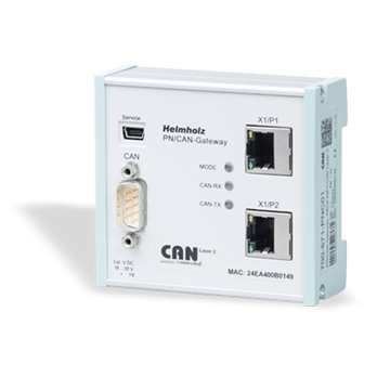 The Helmholz PN/CAN gateway makes the connection of CAN devices on to a ProfiNet network very straightforward. It supports transfer rates up to 100Mbps full duplex, and up to 1Mbps on the CAN bus. The I/O data of the CAN participants is transparently displayed in a freely configurable manner on the PROFINET network and can be processed directly in the PLC. Features include MRP (media redundancy), extensive diagnostic functions and online diagnostics interface. The PN/CAN gateway is a CANopen master therefore supports gateway network management, SYNC telegrams and node guarding/heartbeat for monitoring the participants and LSS services. Up to 16 PDOs can be configured for each CANopen® slave. It is also possible to configure the CANopen participants using SDO frames and to administer emergency messages.