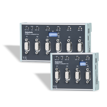 The FLEXtra multiRepeater is a full PROFIBUS repeater designed for DIN rail mounting. It regenerates the incoming electrical signal on a bus line and re-transmits it. The FLEXtra® twinRepeater supports data rates from 9.6kbps to 12Mbps and recognizes them automatically. It can be used for bus extension, to increase the number of participants, and to expand the system. Use in MPI networks is supported, as is Star networks. The status LEDs provide a quick overview of the current bus status. Electrical isolation between the PROFIBUS segments is provided. Dip switches allow the individual segments to be turned off, and main switch for turning off all segments. Two models are available offering 4 way or 6 way segment bus extension.
